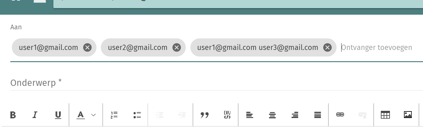 Yes, I know. If I cut&paste a single address it is working as expected. I can leave the field with tab and the send arrow ist white. If I cut&paste more than one address, I can't leave the field with tab, only by mouseclick and the send arrow remains greyed out (screenshot attached). It is the same in current version of Firefox (104.0.1), Chrome (104.0.5112.102), Edge (105.0.1343.27), OS is Windows 10. |