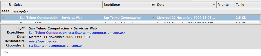 Return-Path: <owner-misc+M92201@openbsd.org> Received: from smtp.l00-bugdead-prods.de ([unix socket]) by communicator.ds9 (Cyrus v2.3.12) with LMTPA; Wed, 11 Nov 2009 14:14:02 +0100 X-Sieve: CMU Sieve 2.3 Received: from localhost (localhost.ds9 [127.0.0.1]) by smtp.l00-bugdead-prods.de (Postfix) with ESMTP id 3DAB6D2FDB for <sebastia@l00-bugdead-prods.de>; Wed, 11 Nov 2009 14:14:02 +0100 (CET) X-Virus-Scanned: amavisd-new at example.com Received: from smtp.l00-bugdead-prods.de ([127.0.0.1]) by localhost (communicator.ds9 [127.0.0.1]) (amavisd-new, port 10024) with ESMTP id WiQuuZAZ1T1L for <sebastia@l00-bugdead-prods.de>; Wed, 11 Nov 2009 14:13:27 +0100 (CET) Received: from shear.ucar.edu (lists.openbsd.org [192.43.244.163]) by smtp.l00-bugdead-prods.de (Postfix) with ESMTP id 6F353D2F0E for <sebastia@l00-bugdead-prods.de>; Wed, 11 Nov 2009 14:13:26 +0100 (CET) Received: from openbsd.org (localhost.ucar.edu [127.0.0.1]) by shear.ucar.edu (8.14.3/8.14.3) with ESMTP id nABD9rxU024809; Wed, 11 Nov 2009 06:09:53 -0700 (MST) Received: from mail.dnsba.com (hostbw-4.dnsba.com [190.2.55.4]) by shear.ucar.edu (8.14.3/8.14.3) with ESMTP id nABD71af025009 for <misc@openbsd.org>; Wed, 11 Nov 2009 06:07:02 -0700 (MST) Received: from Malibu (unknown [190.244.170.28]) by mail.dnsba.com (Postfix) with ESMTP id 18FA6A7884ED for <misc@openbsd.org>; Wed, 11 Nov 2009 11:08:17 -0200 (ARST) MIME-Version: 1.0 From: "San Telmo Computacion" <stc@santelmocomputacion.com.ar> Reply-To: stc@santelmocomputacion.com.ar To: misc@openbsd.org Subject: =?windows-1252http-equivContent-Type?Q?San_Telmo_Computaci=F3n_-_Servicio?= =?windows-1252http-equivContent-Type?Q?s_Web?= Content-Type: text/plain; charset="us-ascii" X-Mailer: SendBlaster.1.6.0 Date: Wed, 11 Nov 2009 10:06:48 -0200 Message-ID: <2100642349922361827132@Malibu> X-Converted-To-Plain-Text: from multipart/alternative by demime 1.01d X-Converted-To-Plain-Text: Alternative section used was text/plain X-Loop: misc@openbsd.org Precedence: list Sender: owner-misc@openbsd.org )"> |