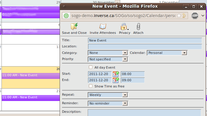 | 0001522 | SOGo | Web Calendar | public | 2011-12-02 18:18 | 2011-12-06 18:41 |
