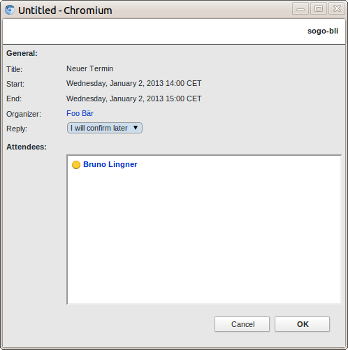| Description | If one occurrence of an recurring event is accepted in the webGUI, the event is modified/updated in the organizer's calendar, but not in the attendee's, the attendee still sees the same status in his view. | ||||