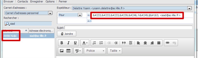 | Description | Hi, if you write a new mail and you complete the from field (for example) with the adresse book panel, the accented characters are html encoded with &#...(see attachment). | ||||