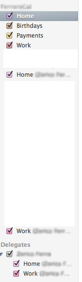 | Description | This issue appears from OS X 10.9.0 to current. Delegated calendars show up twice, once under the current logged on user and a second time under the delegated user. | ||||