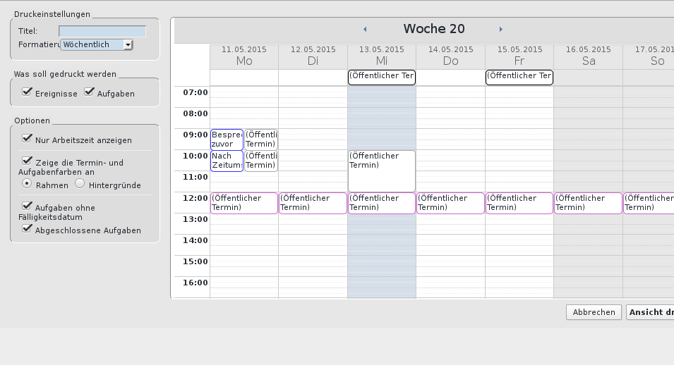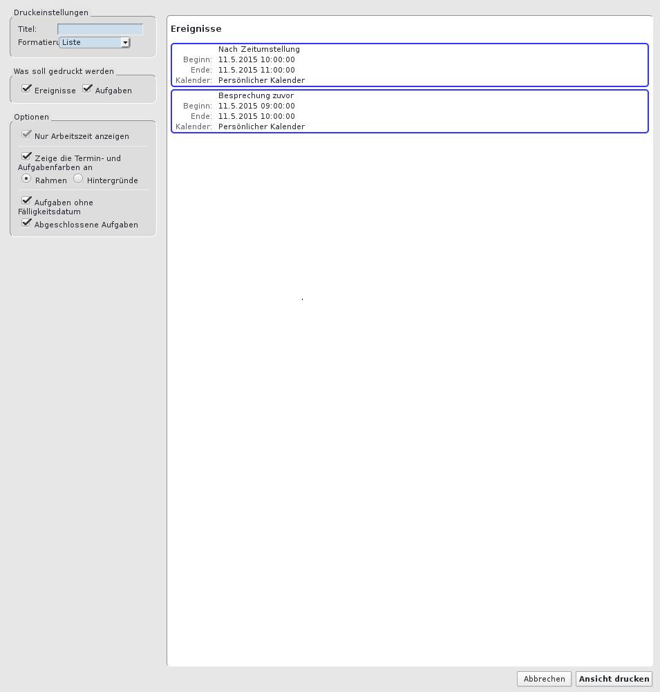 | Description | The calendar list print view omits appointments from shared calendars. While the user's own events are printed successfully, events from shared calendars are not displayed. | ||||