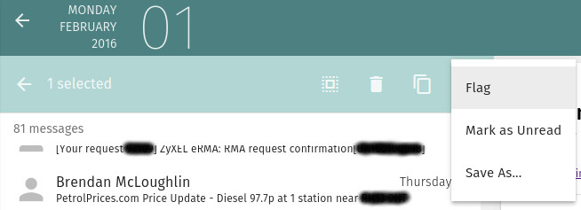 | Description | The ability to move (refile) a message (or a selection of messages) into a different folder is currently missing from the v3.0.0 web interface. For customers who like to keep their messages well organised in folders this is a large omission. A screenshot is attached showing the available options. | ||||
