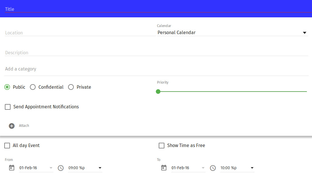 | Description | A strange %p appears at the end of the time selector field in newly created calendar events via the v3.0.0 web interface. My guess is that this should be the AM/PM indicator and that something has not been escaped (or excessively) somewhere in the code. Tested using Chrome 48.0.2564.97 or Firefox 44.0 on Ubuntu 14.04 LTS desktop (64 bit) browsers. | ||||