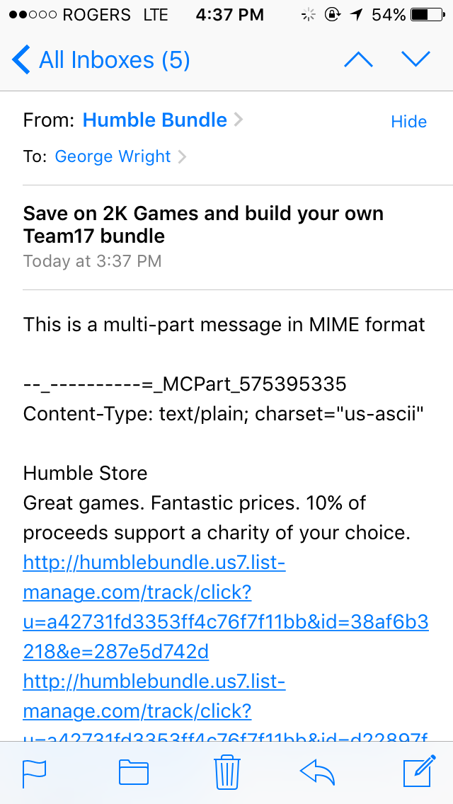 | Description | I often get multipart MIME messages which don't display correctly in iOS. I have attached a screenshot of an example. | ||||