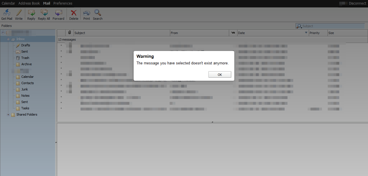| Summary | 0003688: INBOX ERROR: The message you have selected doesn't exist anymore. | ||||