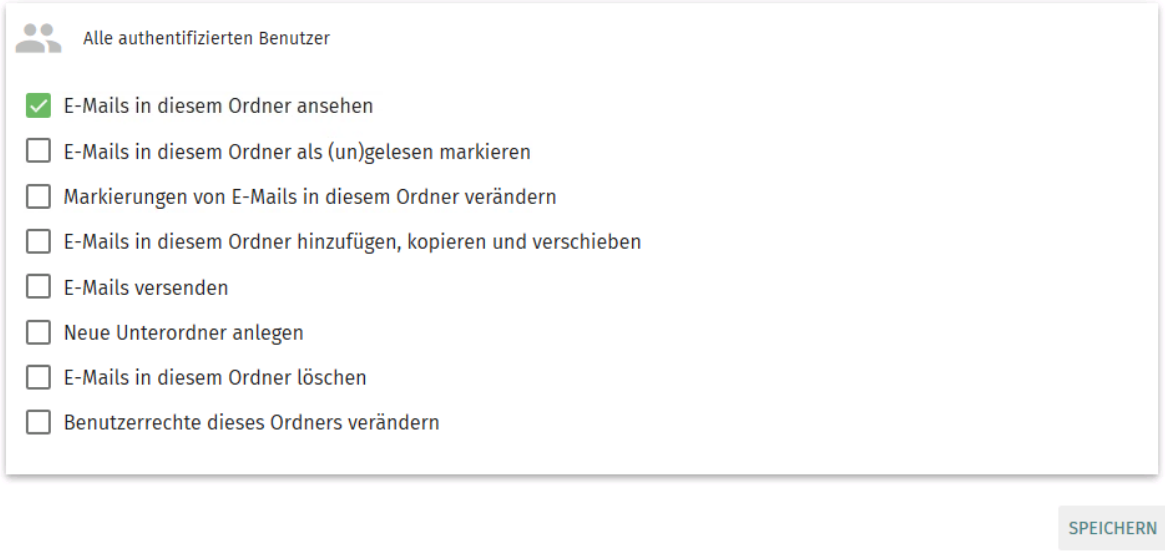 After enabling the debug mode I did what u mentioned. When opening the dialogue for the user rights it performs some imap commands. When I add the <i>Any authenticated user</i> entry the only thing in the log is <code>