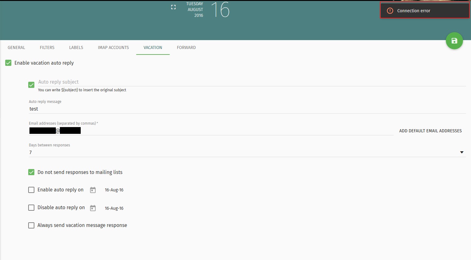 I just ran into this issue with a user who enabled "Auto Reply Subject" but didn't enter any text. In this case the option to save the vacation message is grayed out (which is good) but if the user navigates away from the page they get the dialog "Unsaved Changes Do you want to save your changes made to the configuration?" If the user selects "Save", a connection error dialog is displayed but the vacation message appears enabled in the web GUI even though the sogo.sieve file is not updated on the mail server. |