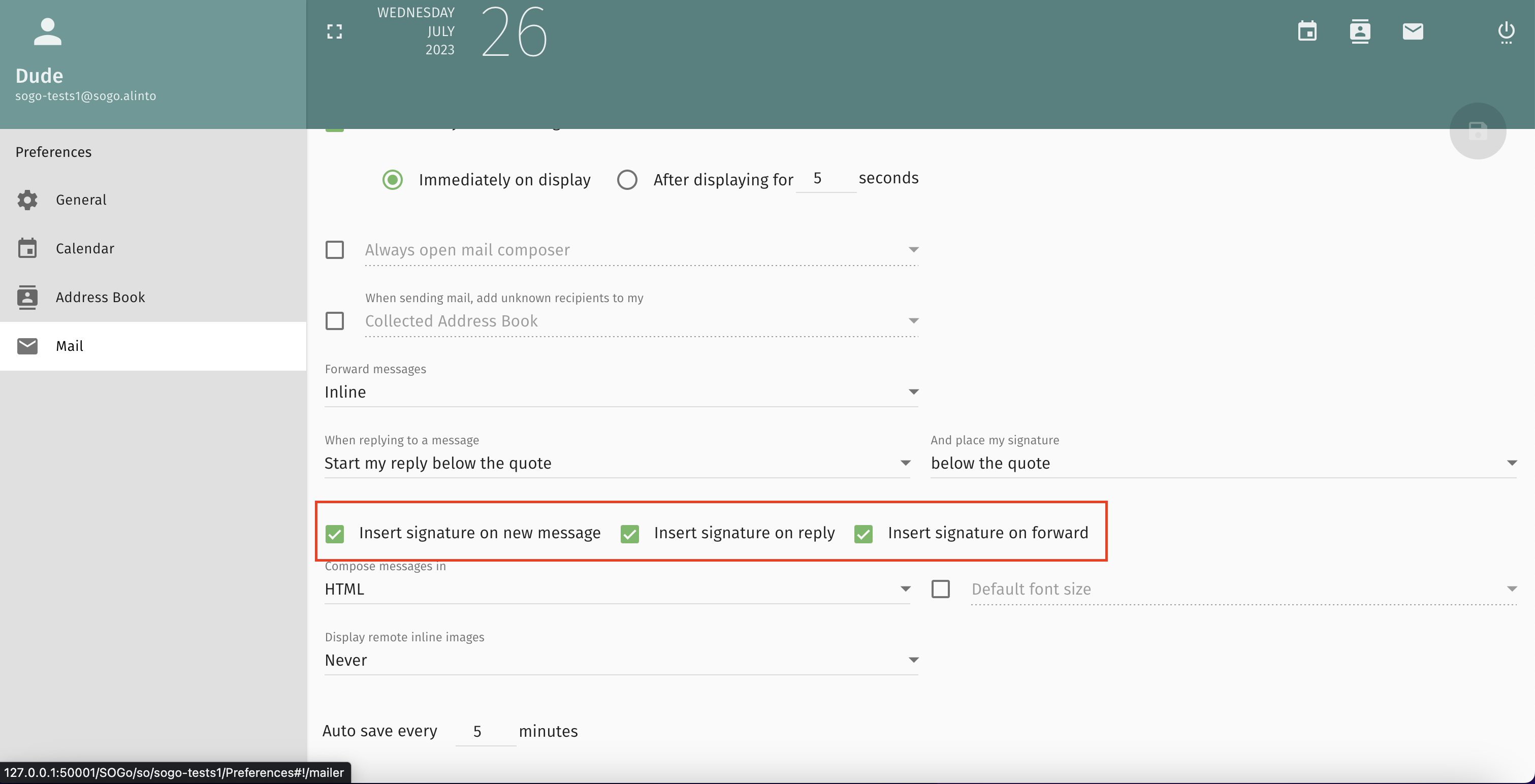 Hi, this feature is done. Commit : https://github.com/Alinto/sogo/commit/8582e423bdd69e200ff8cdec7f1d94634455e519 You can try next nightly build. Sebastien |