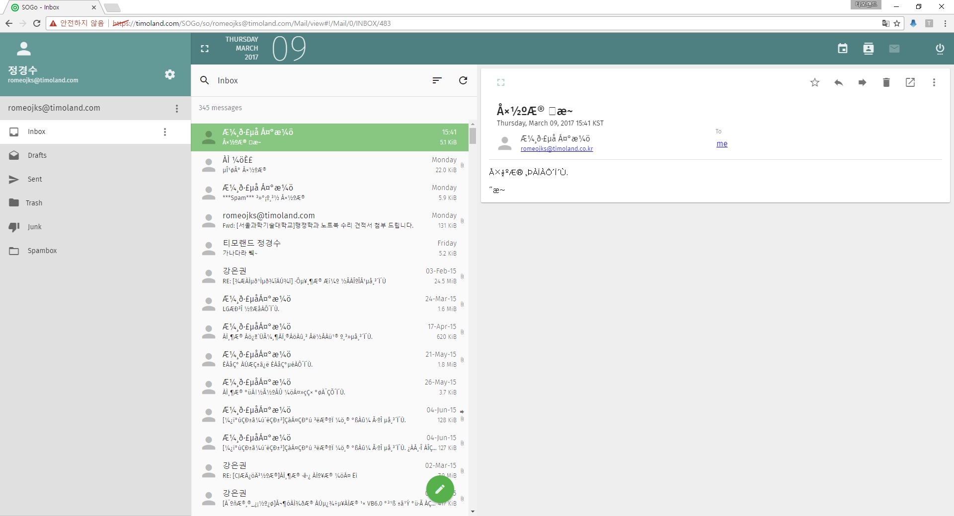 I received an email from the developer about the solution. SOGo uses the GNU iconv libraries to convert character sets for display. From http://www.iana.org/assignments/character-sets/character-sets.xhtml In order to get this working, you have to specify those aliases in alias KS_C_5601-1987// UHC// You can find those on your server with: Beware: |