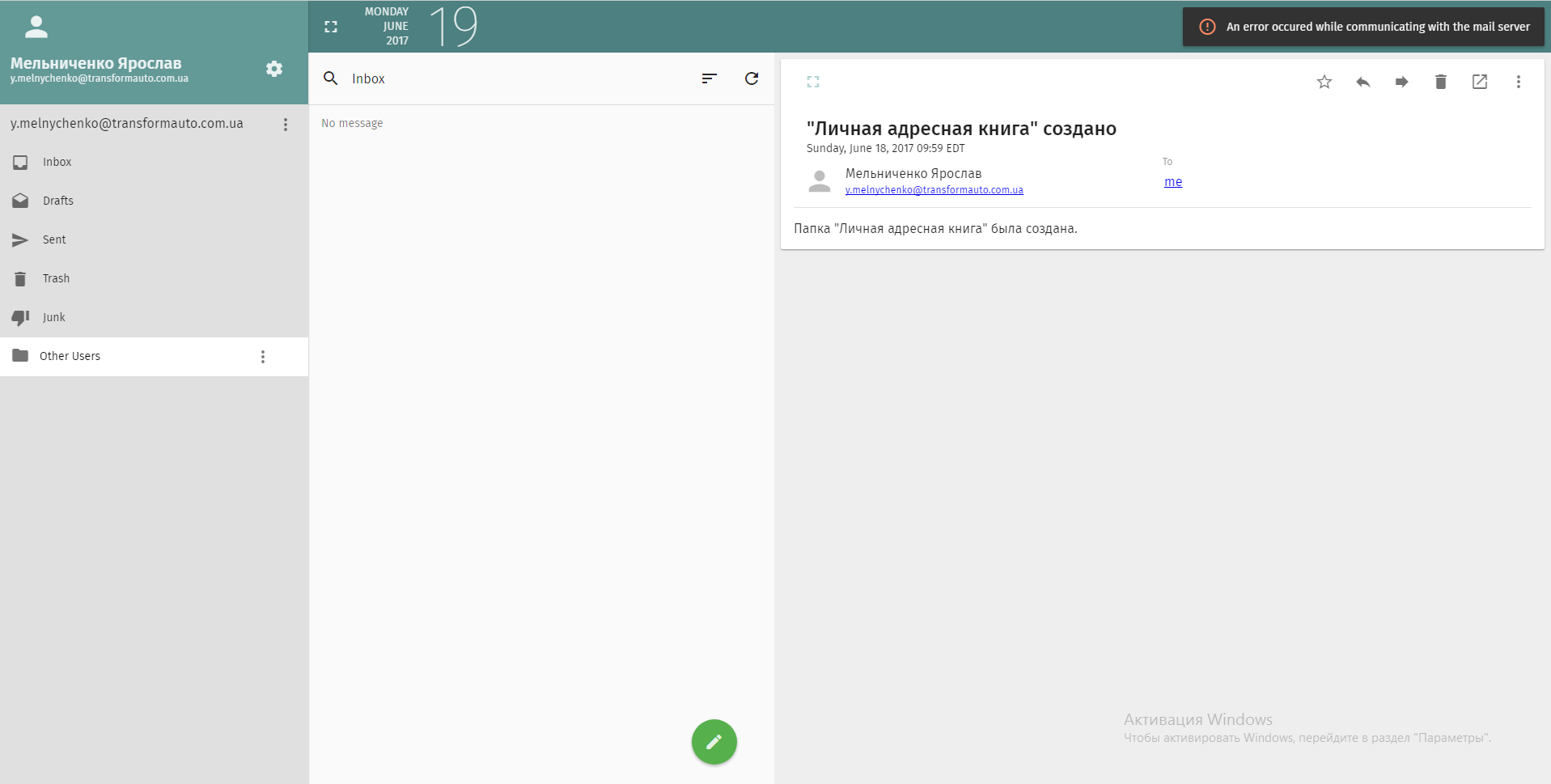 | Description | When creating your own folders. An error jumps out " An error occured while communicating with the mail server" | ||||