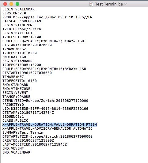 Yes it should be. Check out "X-APPLE-TRAVEL-DURATION;VALUE=DURATION:PT30M" |