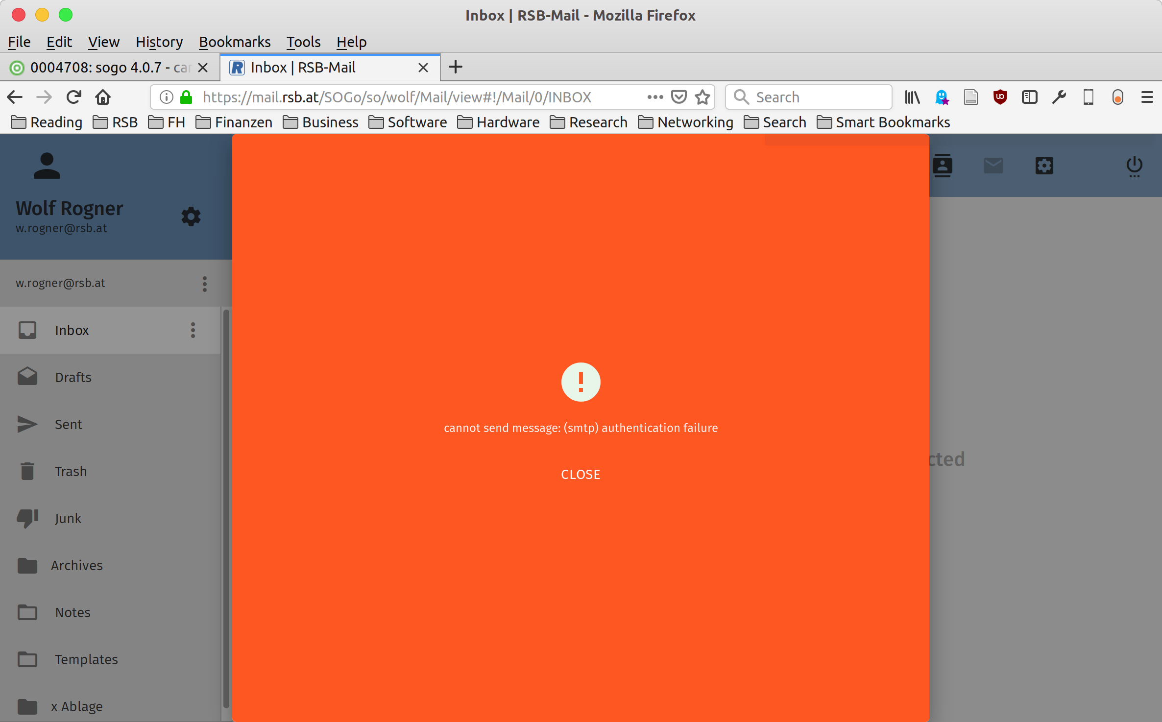 | Description | After upgrade to sogo_4.0.7.20190321-1_amd64.deb sending mail via Web interface does not work. Last (definately) good version: sogo_4.0.7.20190321-1_amd64.deb | ||||