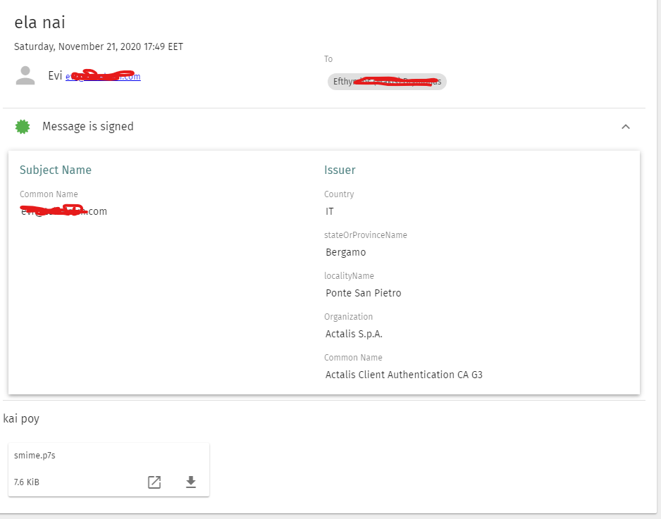 | Description | I have installed Actalis certificates for recipients and senders. | ||||