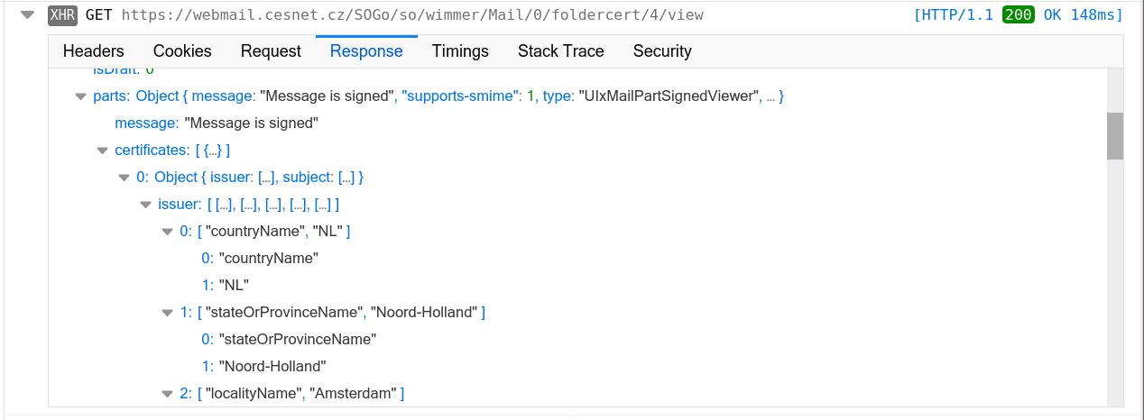 | Description | For some certification authority SOGo Web Mail doesn't show detail information about certificate used for signed message. | ||||