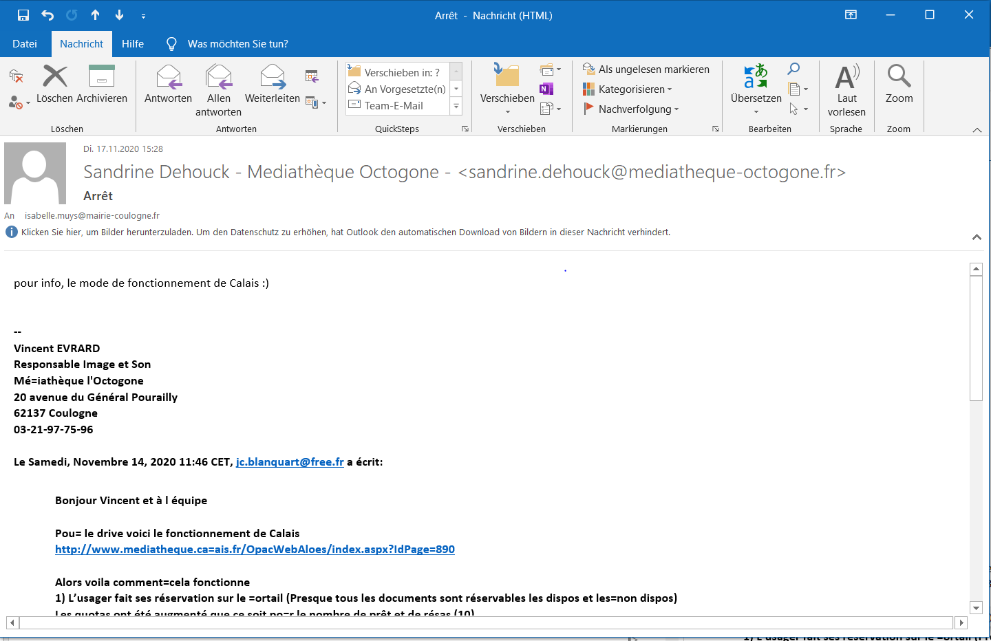Return-Path: <cce96589.AU0AABYBZ4QAAAAAAAAAALkVC6wAAYCsYhUAAAAAABXuywBfs93-@bnc3.mailjet.com> Delivered-To: isabelle.muys@ville-coulogne.local Received: from nethserver.ville-coulogne.local by nethserver.ville-coulogne.local with LMTP id EP0pDwDes19nXAAAFczLjQ for <isabelle.muys@ville-coulogne.local>; Tue, 17 Nov 2020 15:28:16 +0100 Received: from o50.p25.mailjet.com (o50.p25.mailjet.com [185.189.236.50]) by nethserver.ville-coulogne.local (Postfix) with ESMTPS id B380740888BC for <isabelle.muys@mairie-coulogne.fr>; Tue, 17 Nov 2020 15:28:15 +0100 (CET) DKIM-Signature: v=1; a=rsa-sha256; c=relaxed/simple; q=dns/txt; d=bnc3.mailjet.com; i=sandrine.dehouck=3Dmediatheque-octogone.fr@bnc3.mailjet.com; s=mailjet; h=message-id:mime-version:from:to:subject:date:list-unsubscribe:list-unsubscribe-post: feedback-id:x-csa-complaints:x-forward:x-mj-mid:x-mj-smtpguid:x-report-abuse-to: x-rspamd-queue-id:x-rspamd-server:x-spamd-result:content-type; bh=v8RogUb9xe/U9luhAQsb1y7DmKZ20DPVI3FZMtkK4qs=; b=q6jgO0hpnn0WM+MSXMSGnBiwxe7GDaGRRQ7LWeCtmQHPPVP5ic1wDYfp1 5UXNuVyh0j70a4x2q/uavXfbKLPp9dGsjo0fkQBhNCMCA/1qfuK9lgrHqrUt l2FYVR38PIXlYArfmrCI5K6PFKn6lWBs3WqH5HQ7vm4t+vsKz79R+k= Message-Id: <cce96589.AU0AABYBZ4QAAAAAAAAAALkVC6wAAYCsYhUAAAAAABXuywBfs93-@mailjet.com> MIME-Version: 1.0 From: =?UTF-8?q?Sandrine_Dehouck_-_Mediath=C3=A8que?= =?UTF-8?q?_Octogone_-?= <sandrine.dehouck@mediatheque-octogone.fr> To: isabelle.muys@mairie-coulogne.fr Subject: =?utf-8?q?Arr=C3=AAt?= Date: Tue, 17 Nov 2020 15:28:13 +0100 List-Unsubscribe: <mailto:unsub-cce96589.xn208.lpkx097xpzjm@bnc3.mailjet.com>, <https://xn208.mjt.lu/unsub2?m=AU0AABYBZ4QAAAAAAAAAALkVC6wAAYCsYhUAAAAAABXuywBfs93--08upK37RTSSp20C5WED3wAVqB4&b=cce96589&e=f7219caf&x=BKbnstTDT6cHblR_lGsDJZ0LNSRWLjHJkpyrlDXQx8U> List-Unsubscribe-Post: List-Unsubscribe=One-Click Feedback-Id: 42.1437387.1419294:MJ X-CSA-Complaints: csa-complaints@eco.de X-Forward: 88.123.83.28 X-MJ-Mid: AU0AABYBZ4QAAAAAAAAAALkVC6wAAYCsYhUAAAAAABXuywBfs93--08upK37RTSSp20C5WED3wAVqB4 X-MJ-SMTPGUID: fb4f2ea4-adfb-4534-92a7-6d02e56103df X-REPORT-ABUSE-TO: Message sent by Mailjet please report to abuse@mailjet.com with a copy of the message Content-Type: multipart/alternative; boundary*0="----=_=-_OpenGroupware_org_NGMime-28726-1605623293.364857-0---"; boundary*1="---" X-Rspamd-Queue-Id: B380740888BC X-Spamd-Result: default: False [0.00 / 9.00]; FROM_DOMAINS_WHITELIST(0.00)[mailjet.com]; ASN(0.00)[asn:200069, ipnet:185.189.236.0/22, country:FR] X-Rspamd-Server: nethserver.ville-coulogne.local ------=_=-_OpenGroupware_org_NGMime-28726-1605623293.364857-0------ Content-Type: text/plain; charset=utf-8 Content-Transfer-Encoding: quoted-printable Content-Length: 2211 --=C2=A0 Sandrine Dehouck Responsable de la m=C3=A9diath=C3=A8que l'Octogone 20 Avenue du G=C3=A9n=C3=A9ral Pourailly 62137 Coulogne N=C2=B0 T=C3=A9l : 03.21.97.75.96 |