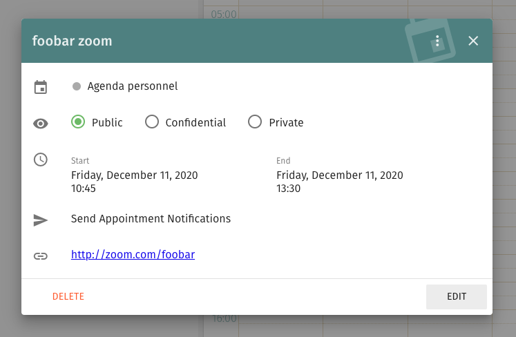 | Description | At this time when we are experiencing remote work, it would be great to have a field to insert a link to a web conference, this link could be displayed in the invitation and in the calendar event as a button [enter the web conference] | ||||