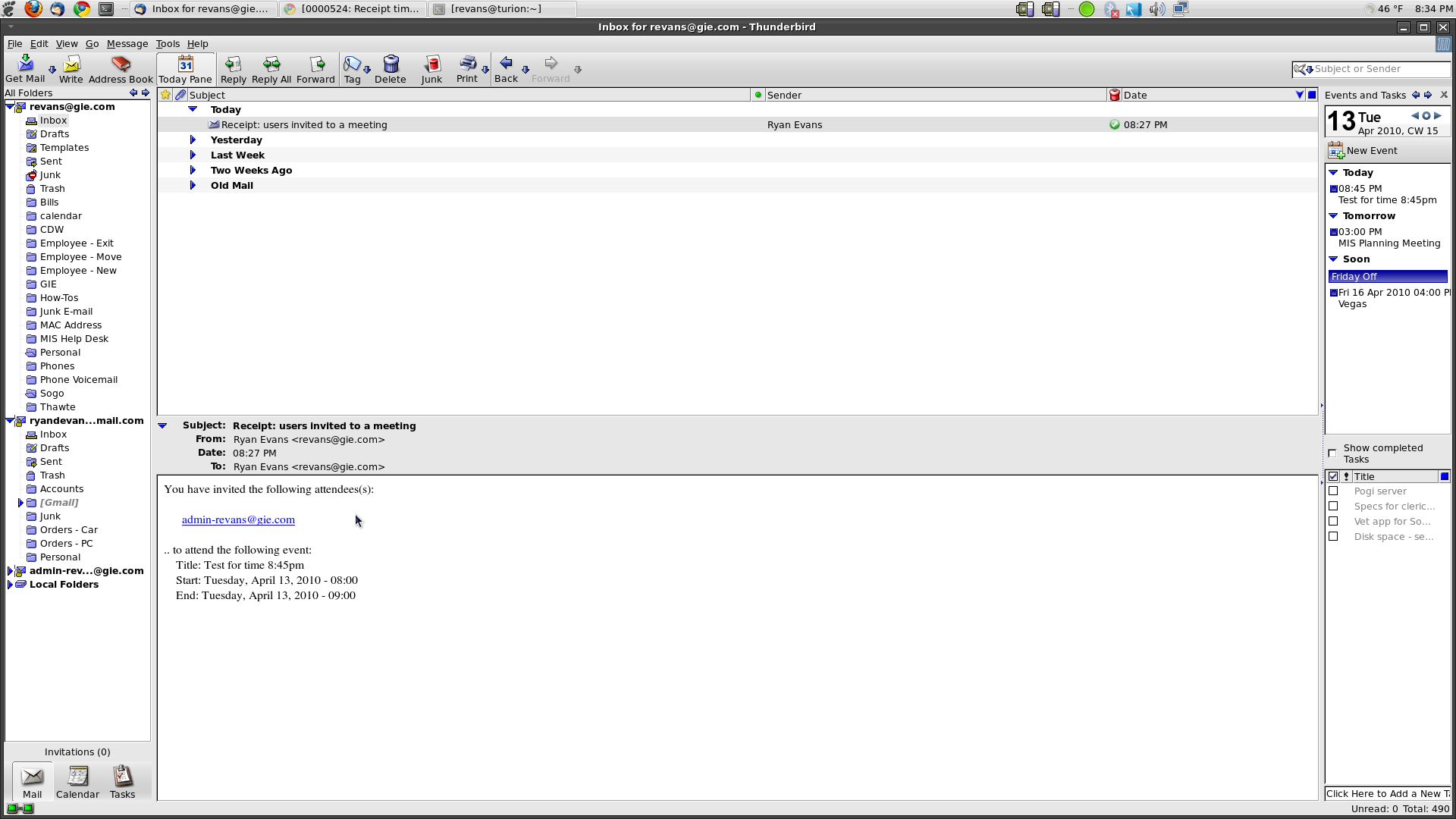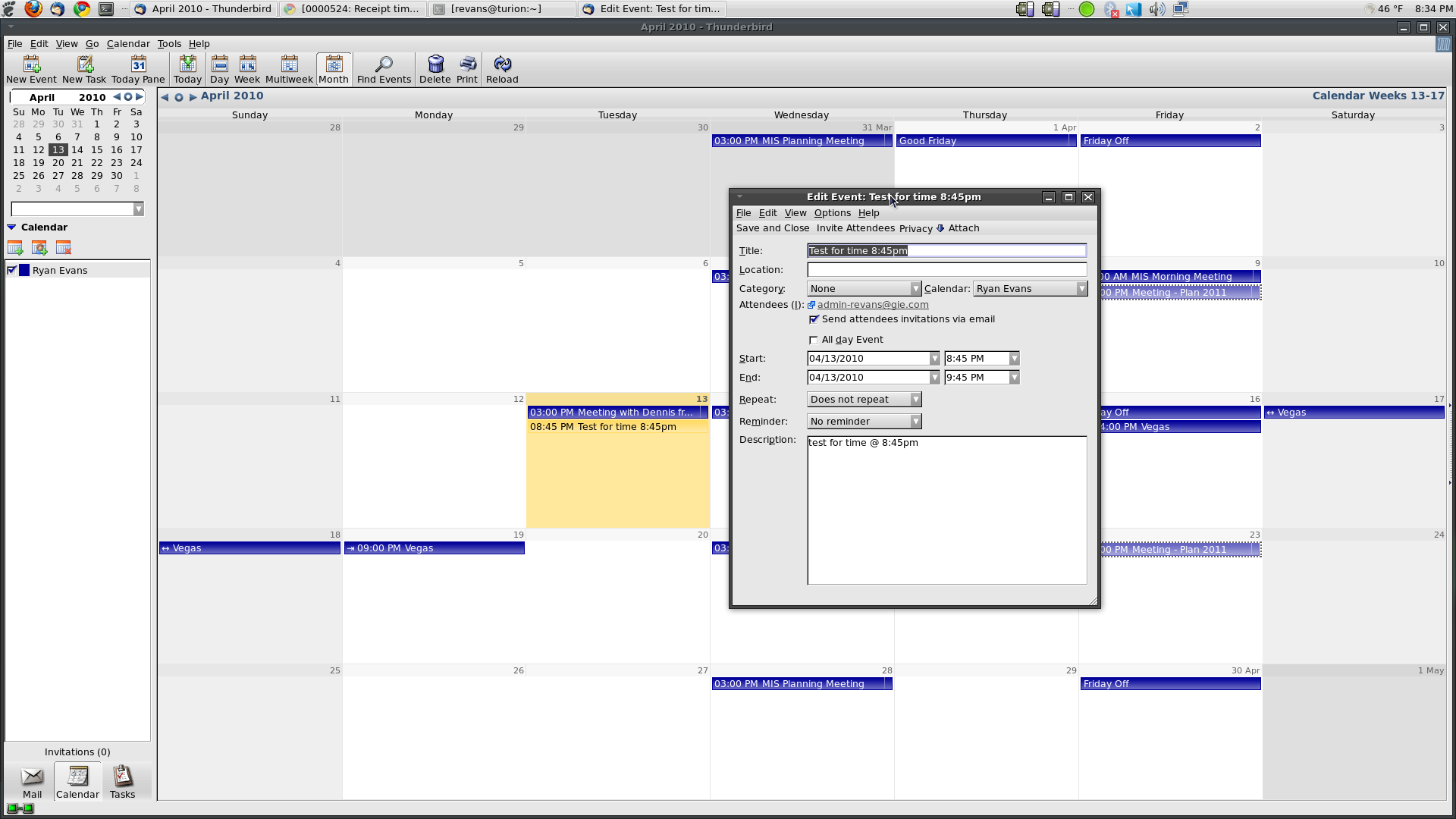Just updated to the nightlies of sogo-1.2_20100413-1.el5: Receipts now work again (thanks!) but the receipt still shows wrong, I created a meeting for 8:45pm. the receipt shows 8:00pm - 9:00pm. |