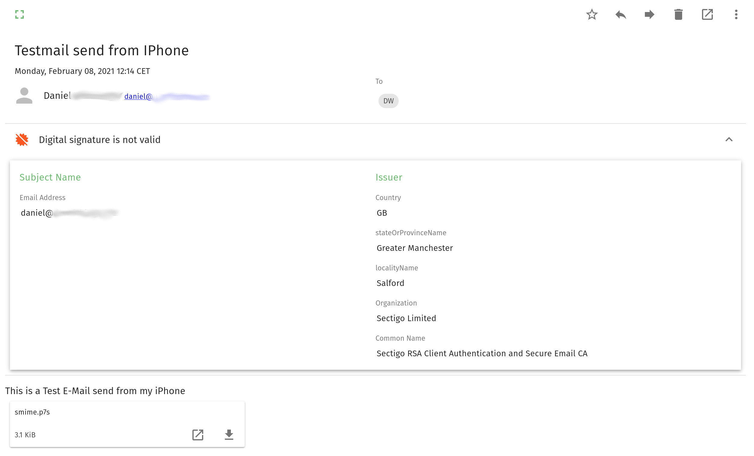 | Summary | 0005257: S/MIME Digital Signature is not valid when sending via iOS Mail | ||||