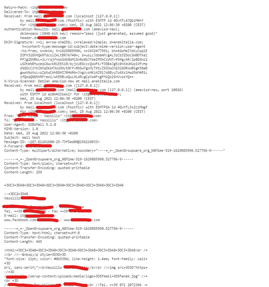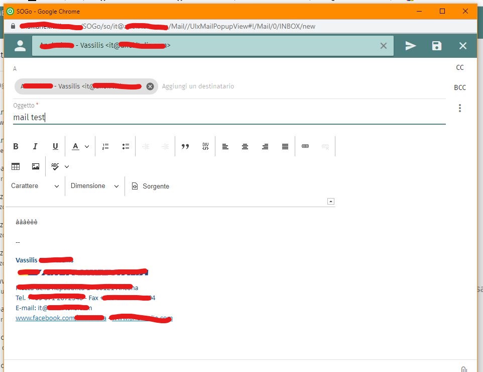| Description | Tonight I updated my sogo with nightly repositories, from that moment everytime I send an email, will be delivered with unreadable characters matching characters such as èà <>. I'm attaching some screens. Only way to fix this is to disable html format and use plain/text. This happens on any client including sogo itself. This doesn't happens if I send an email from outlook/thunderbird with the same account. | ||||