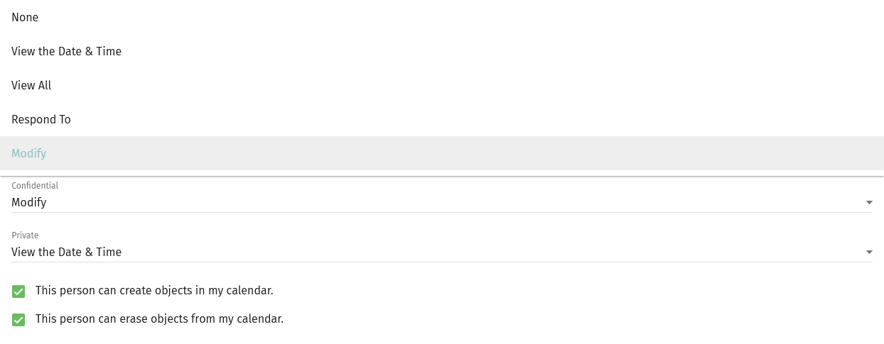 What are the ACLs for the green calendar? You can share a screenshot or use |