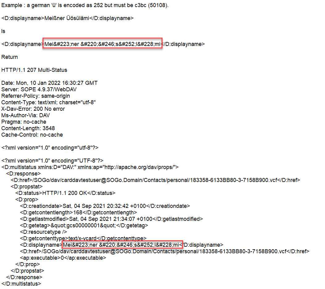 rfc3629 if i understand you correctly, the SOGo response defined on header and body as UTF8 must interpret & # 252 as UTF8 Unicode Dec to ü ? |