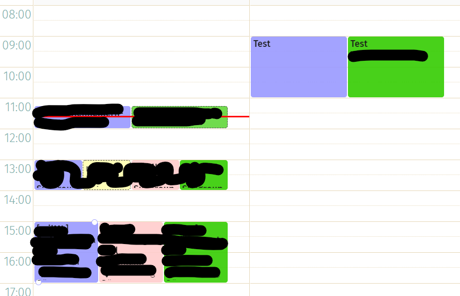 | Description | Can a feature be added that enables the user to adjust the time span of an event that they were only invited to? The changes should only be reflected on their own calendar. This is useful if the user was part of a mass invite and can only attend for, e.g., 45 minutes or only in the second half. This also helps to declutter a calendar with overlapping events. We often have two overlapping events and only attend the first half of the first event and the second half of the second one. If the person who sent the invite updates/changes the time of the event, then local user changes shall be overridden and the updated calendar shall be shown. Asking the person who sent the invite to change the time is not an option, as they would have to change the time for everyone. Example (see screenshot): If owner of green calendar invites owner of purple calendar (and others) to a 2-hour-long event, then owner of purple calendar should be able to adjust the event length/beginning/end only on their own calendar. | ||||