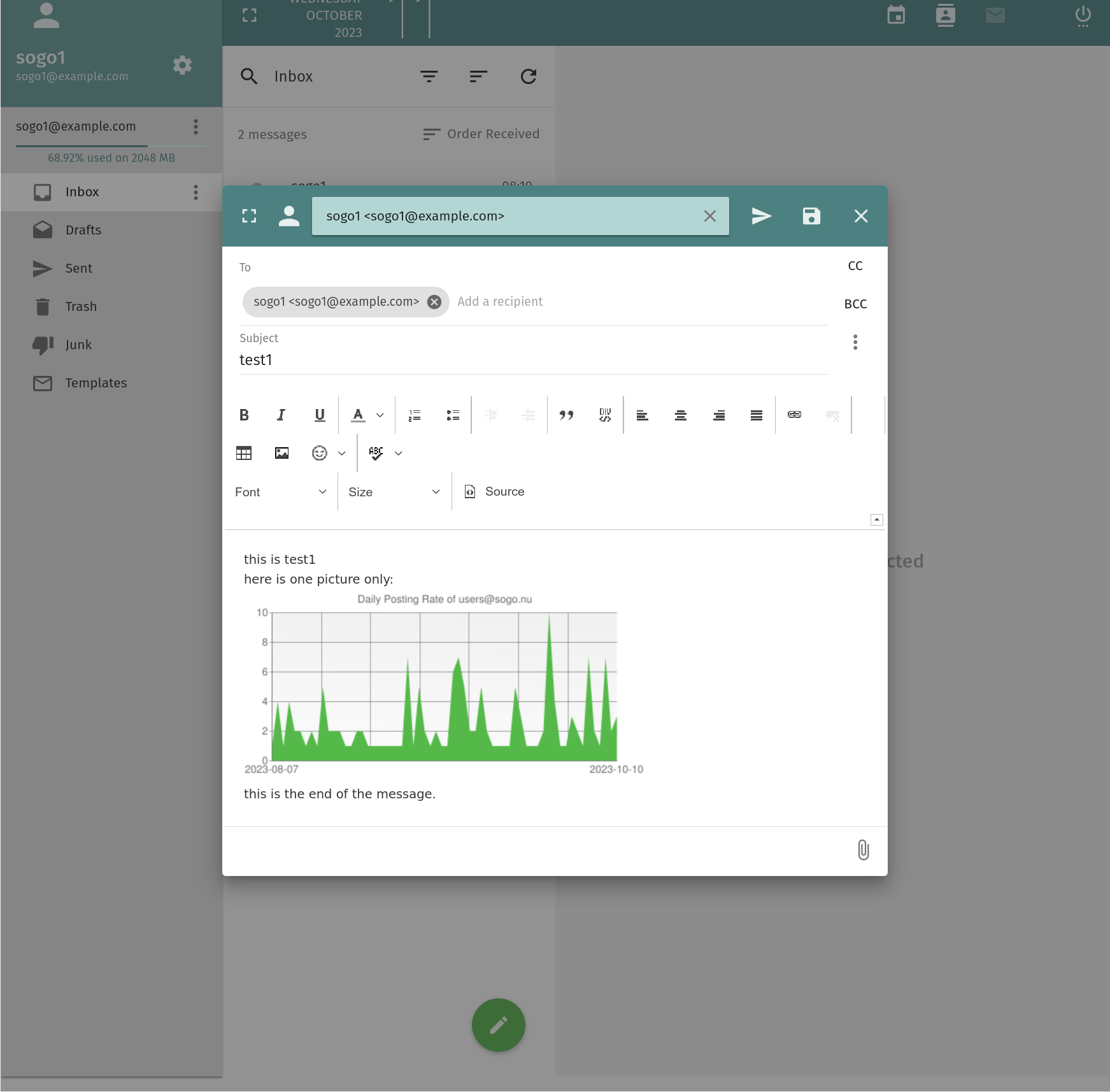 | Steps To Reproduce | Go to https://demo.sogo.nu/, log in as "sogo1", This bug does not appear in "Compose messages in Plain text" mode. | ||||