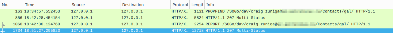 The client Thunderbird is configured with CardDAV URL: https://post.domain.com/SOGo/dav/cody.zuniga@domain.com/Contacts/gal/
