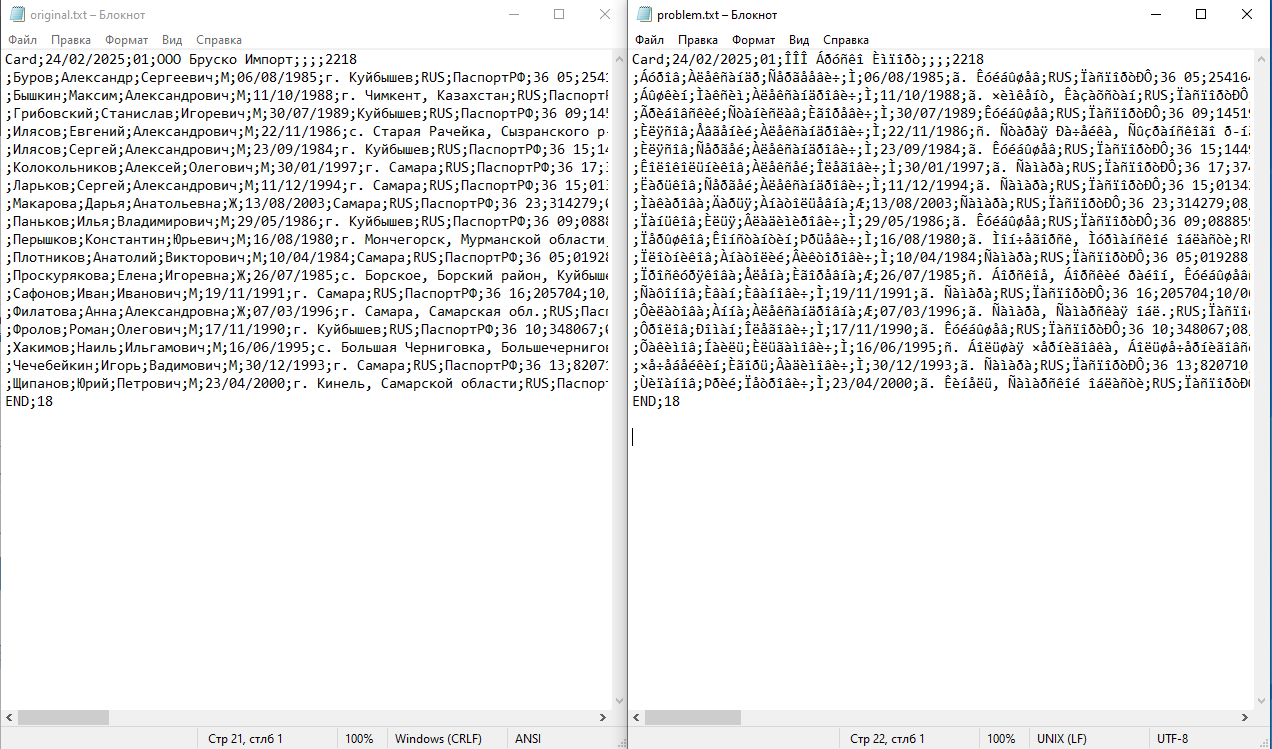 Initially, the encoding is Windows-1251, and after loading into the letter it changes to Windows-1252 |