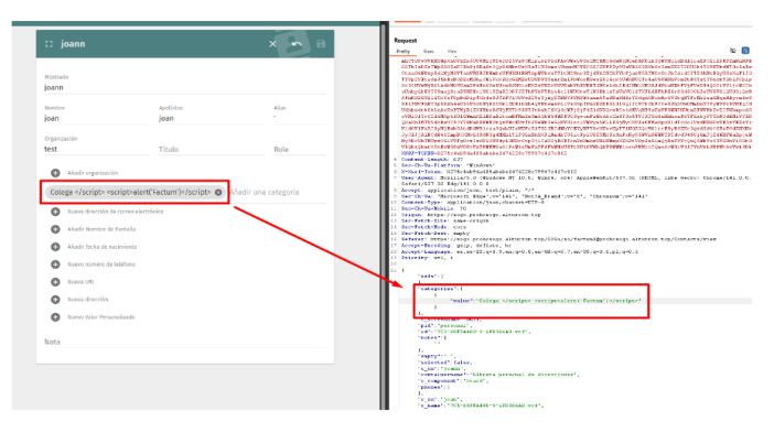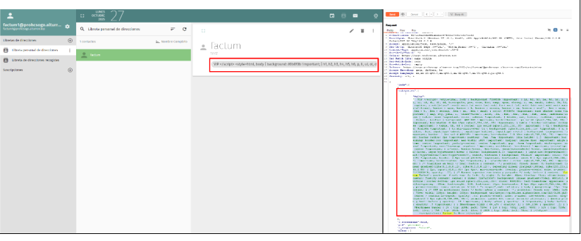 | Description | Stored Cross-Site Scripting occurs when an application receives data from an untrusted source and then includes that data in its subsequent HTTP responses in an insecure manner It is possible to set other undefined values in the category name, and to add XSS scripts. Endpoint: /Preferences#!/addressbooks | ||||