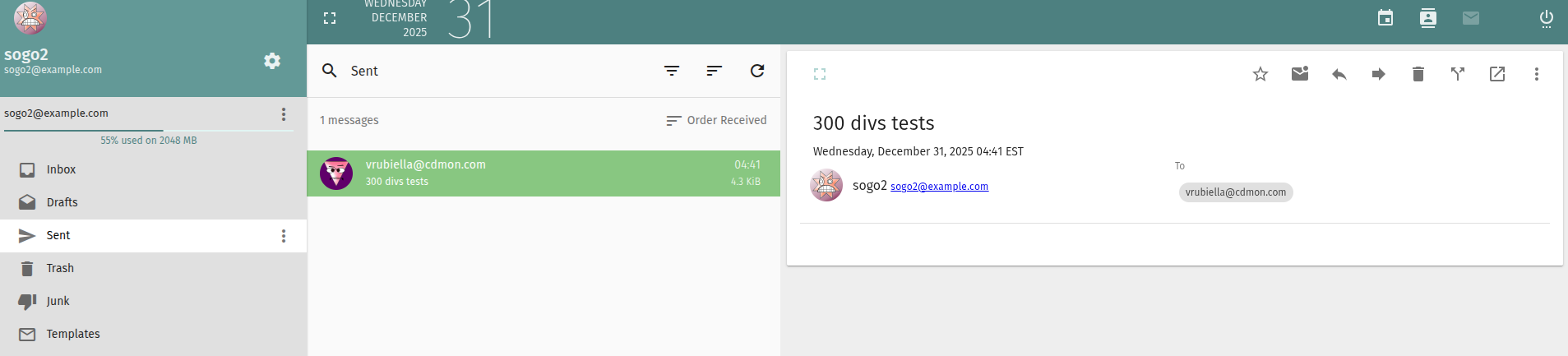 Hello qhivert, We tested it with the account sogo2 and it is failing (Attached image) You can found the mail in the Sent folder. Currently it is failing with 255 tags or more. PD: sogo1 is full, not space available. |