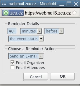 sogod SOGoMailMessageCheck every_5_minutes sogod OCSEMailAlarmsFolderURL postgresql://sogo:sogo@localhost:5432/sogo/sogo_alarms_folder sogod SOGoMailSpoolPath /var/spool/sogo sogod SOGoMailingMechanism sendmail sogod SOGoACLsSendEMailNotifications NO sogod SOGoLoginModule Mail IMAPHostFieldName = mailHost; sogod SOGoEnableEMailAlarms YES sogod SOGoFoldersSendEMailNotifications NO sogod SOGoMailDomain zcu.cz sogod SOGoAppointmentSendEMailNotifications YES |